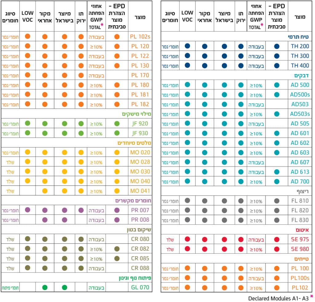 - אחוזי הפחתה GWP TOTAL Declared Modules A1-A3))