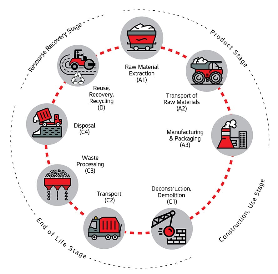 ה-LCA בודק מגוון היבטים סביבתיים במחזור החיים של המוצר כגון צריכת אנרגיה (כמות האנרגיה הנצרכת והאובדת החל משלב יצור חומרי הגלם ושינועם לאתר היצור, בעת יצור המוצר במפעל וכלה בשינוע המוצר הסופי לאתר הבנייה), תרומתו להתחממות הגלובאלית (זאת באמצעות מדד שמעריך את התרומה של כמות נתונה של מסת גזי חממה להתחממות העולמית), הפוטנציאל שלו לדילול שכבת האוזון וכיו"ב. בחינת המוצר כוללת היבטים כגון אורך חייו של המוצר, האם ישנה אפשרות לשימוש חוזר, האם ישנה אפשרות למחזור החומר, האם החומר מתכלה וכדומה.