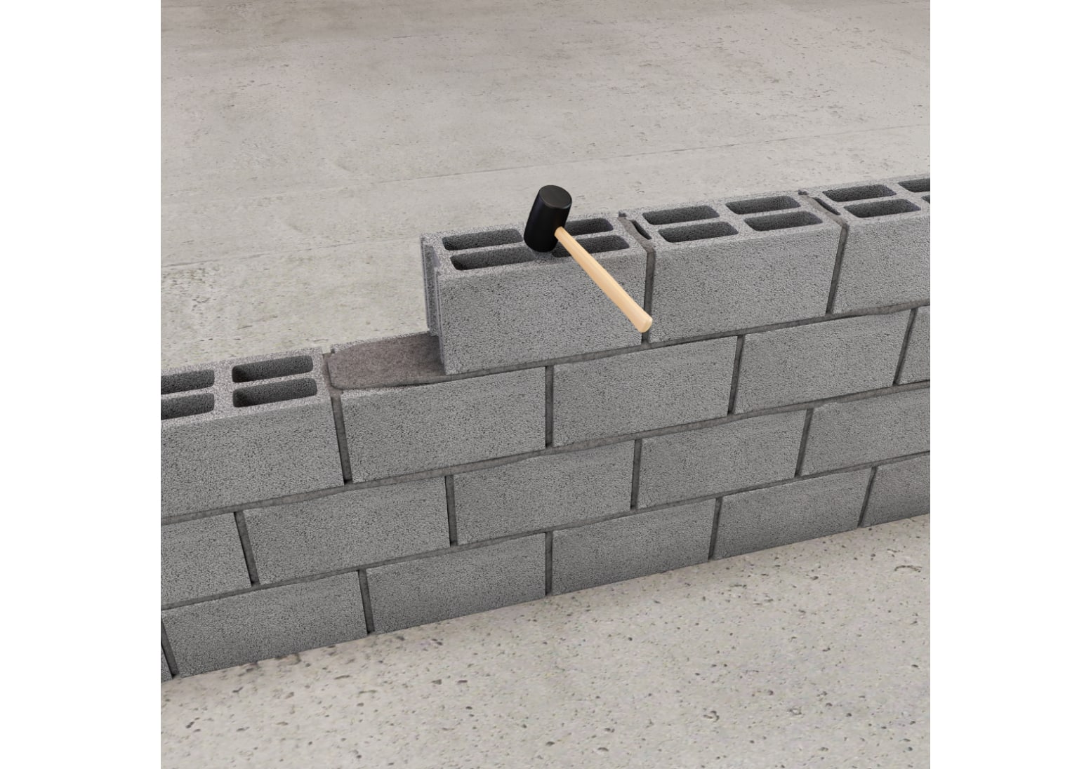 יש להתקין את האבן הבאה ולהדק באמצעות פטיש גומי עד להגעה לעובי הנדרש.