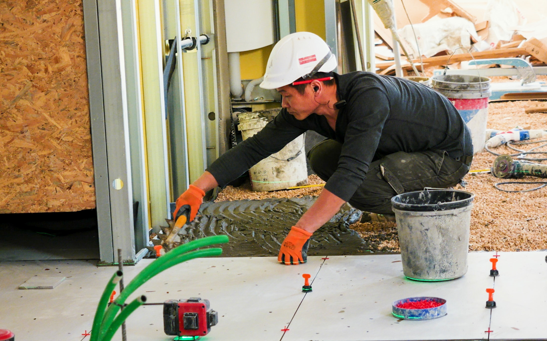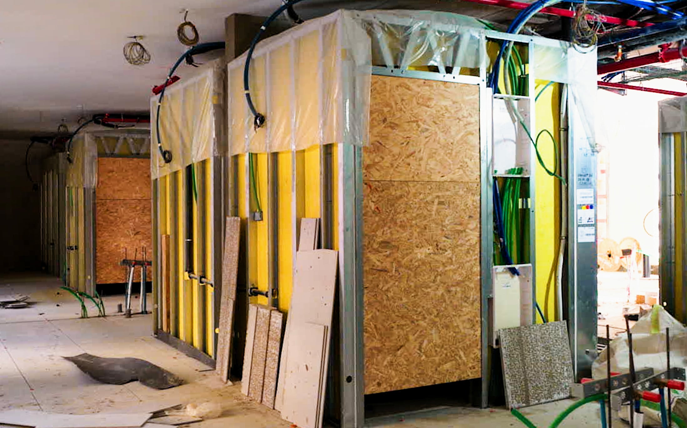 חדרי האמבטיה בדירות נבנו בשיטה מודולרית כלומר, חדר האמבטיה כולו כולל הצנרת ועד הכלים הסניטרים נבנה במפעל וסופק לאתר להרכבה וחיבור למערכות הבניין. בחדרים אלו תרמוקיר סיפקה מערכת מלאה של חומרי איטום והדבקה.
