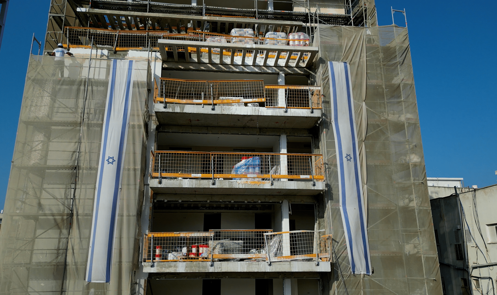 אתגר נוסף בבנייה באזור עירוני צפוף הוא אספקות חומרי הגמר לאתר. הקושי בגישה צפופה עבור משאיות גדולות ושטחי פריקה מאד מצומצמים. המענה לכך היה אספקה על ידי משאיות קטנות ובשעות פעילות מוגדרות מראש.