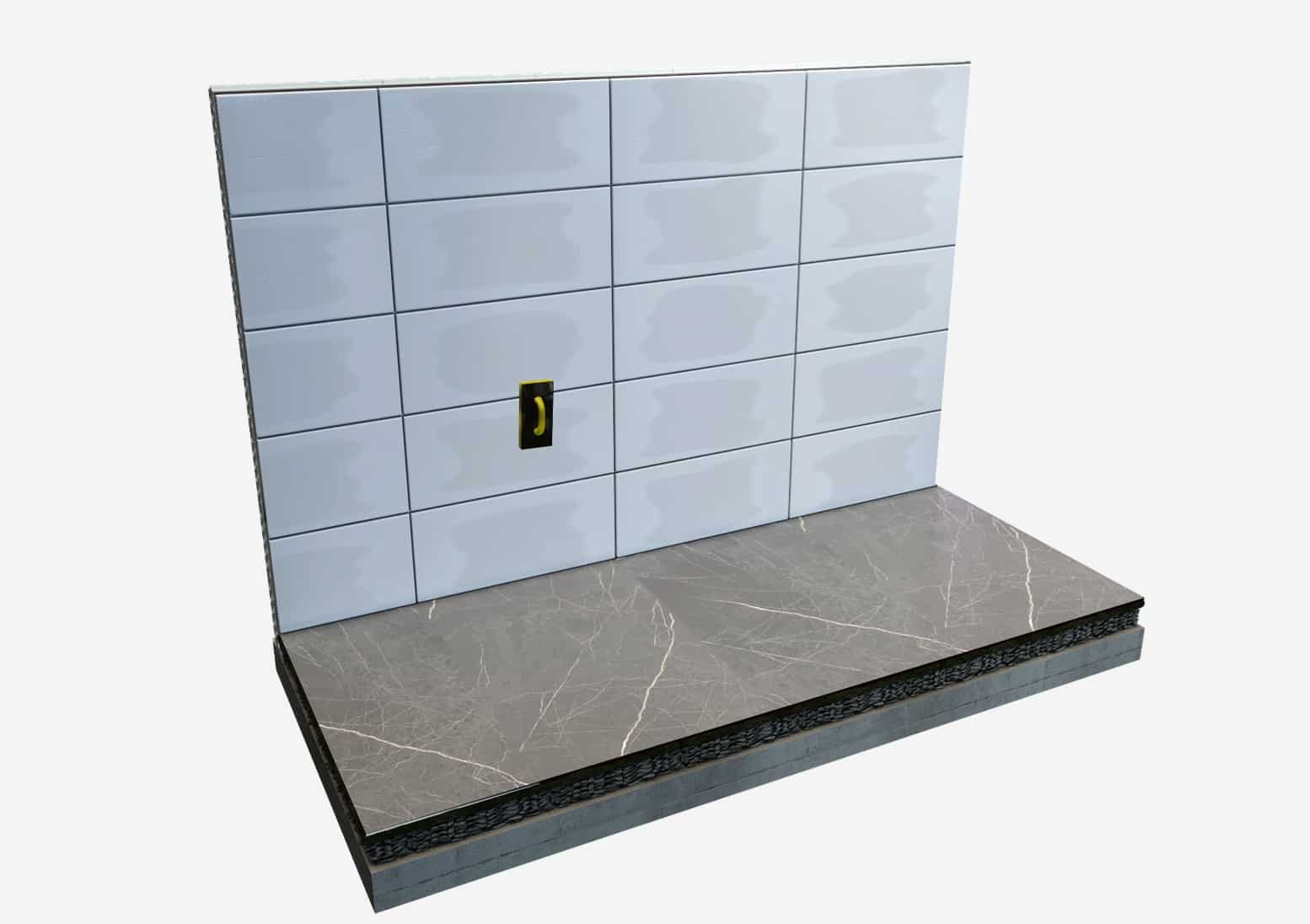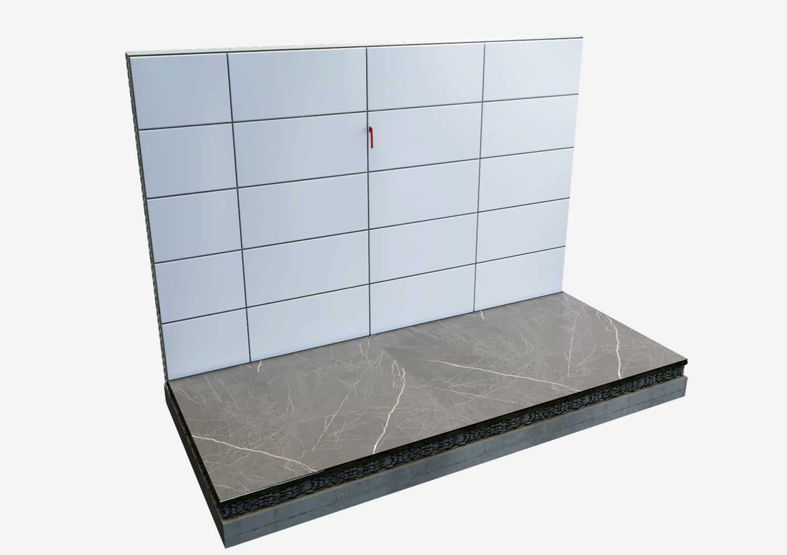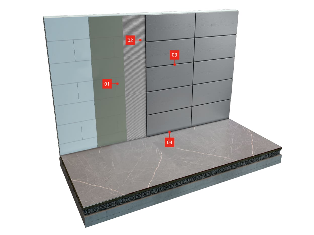 מערכת לחיפוי פנים של אריחי פורצלן וקרמיקה על תשתית בלוק גבס