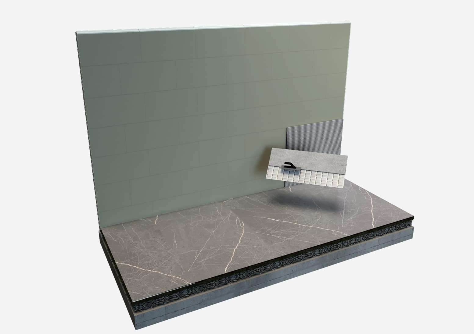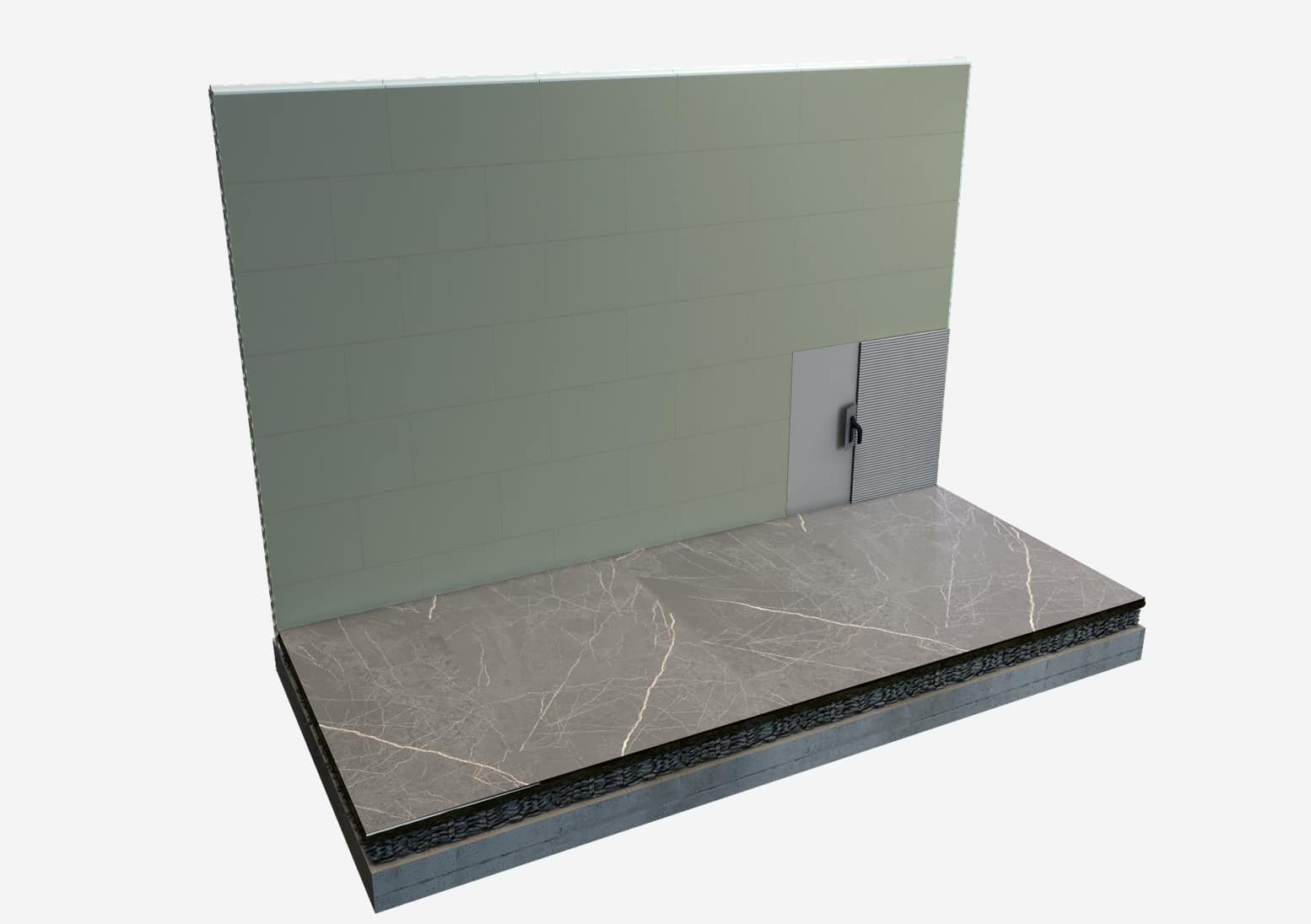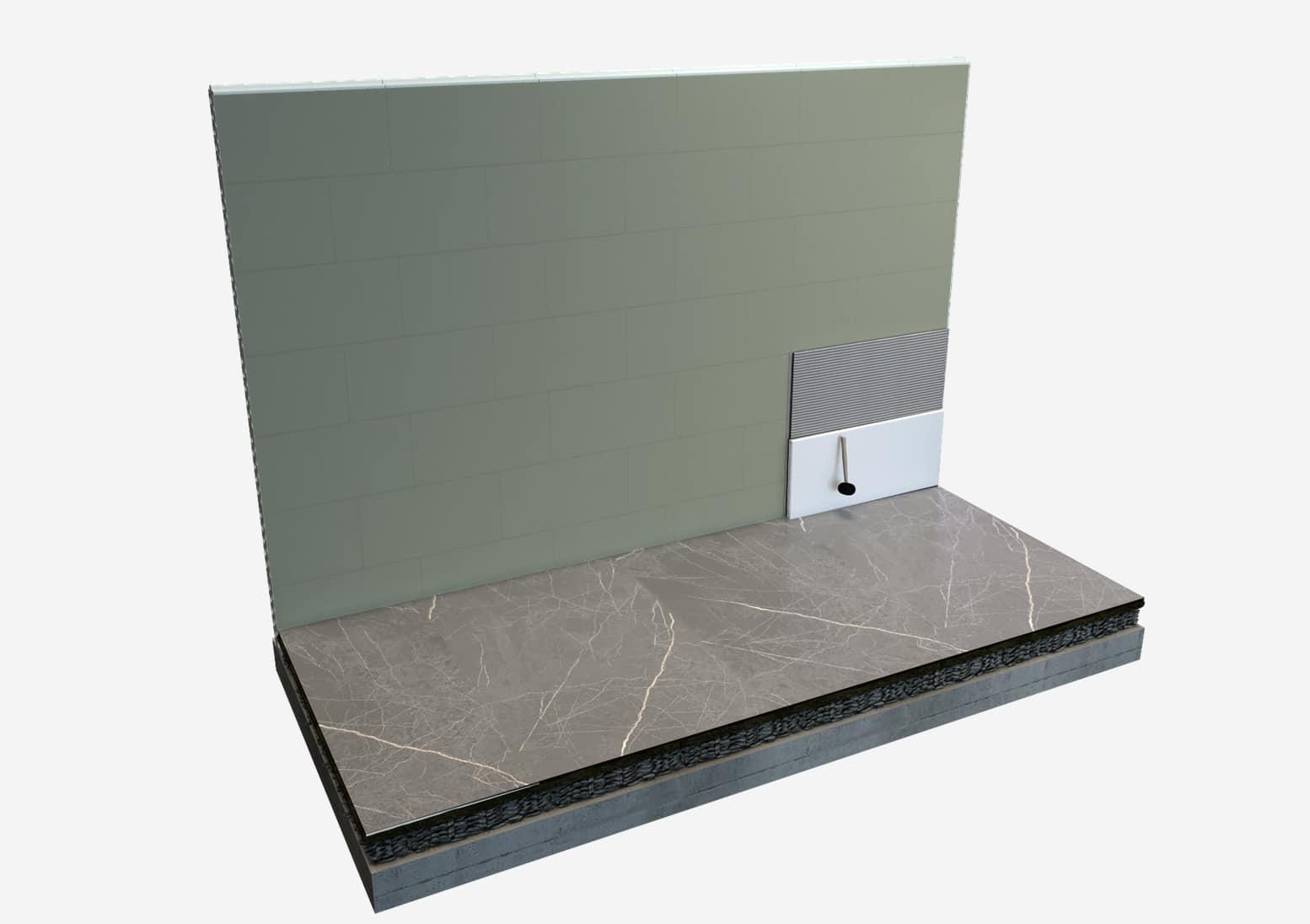 מערכת לחיפוי פנים של אריחי פורצלן וקרמיקה על תשתית בלוק גבס