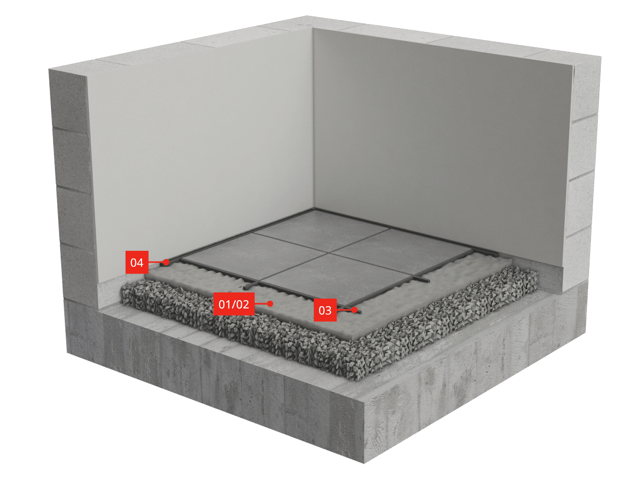 המערכת כוללת שכבת טיט צמנט להתקנת אריחים על שכבת סומסום ומתאימה ליישום בכל סוגי המבנים כגון בנייני מגורים, בתים פרטיים, מבני ציבור, קניונים, בתי חולים ועוד.